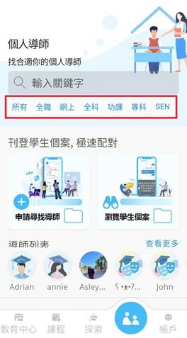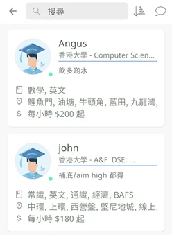 當學生想搵導師時,佢地輸入關鍵詞/一㩒關鍵詞按鈕,就會立即見到你????
